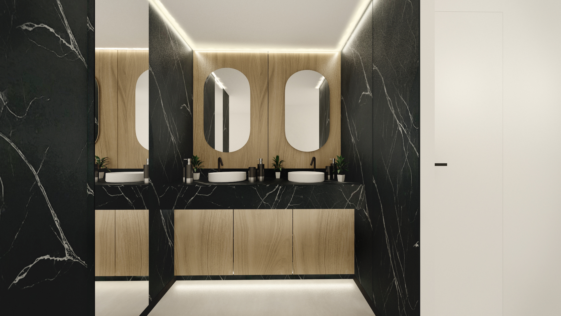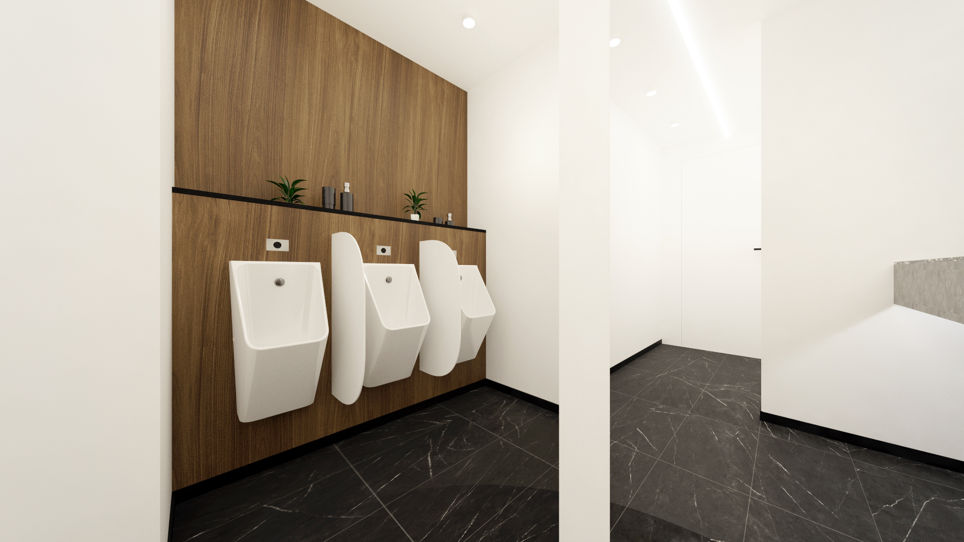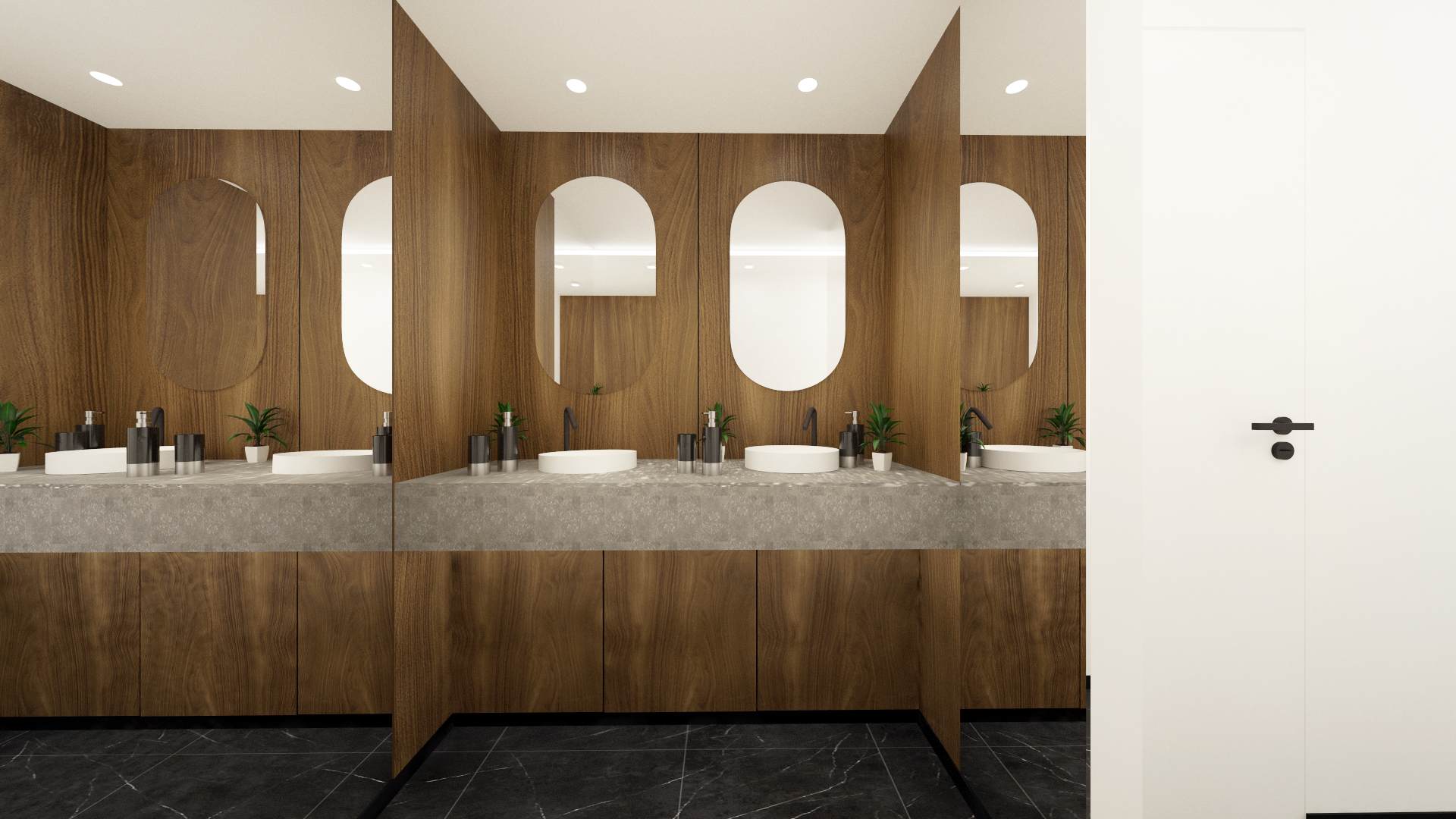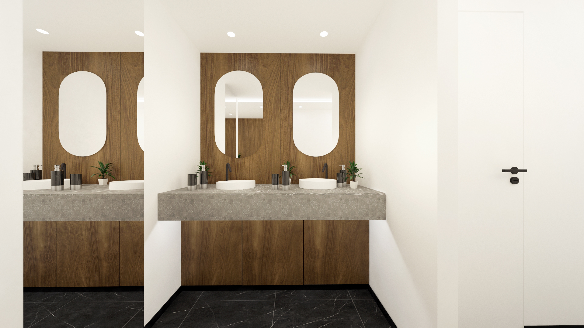 Conception, rénovation intérieure et décoration de certains espaces de la Tour W : palier, plateau de bureau, CHC et sanitaires du sol au plafond.